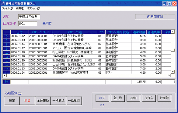| 休日勤務時間 | Holiday Overtime Hours | Kyūjitsu kinmu jikan | 0:00 |