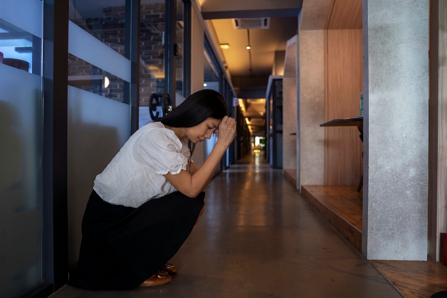 - Crying quietly between meetings or after the workday